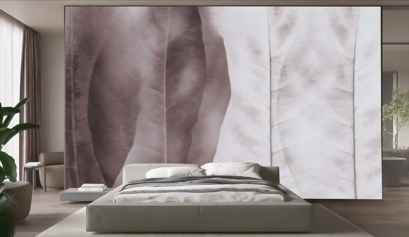 Blushed Foliage tells a story of quiet elegance—where nature’s finest details are captured in a soft gradient of earthy mauves and delicate whites. Inspired by the intricate veins of fallen leaves, this wallpaper evokes a sense of calm and organic sophistication, making it a statement piece for any interior.