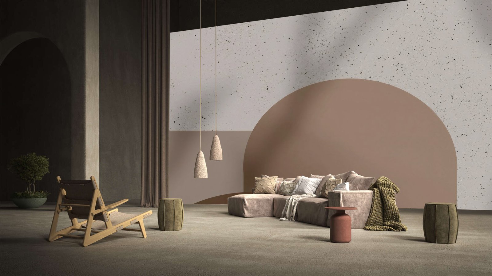 Inspired by the quiet beauty of minimalist landscapes, Earthen Arc brings harmony and warmth to any space. The soft curvature of the arch meets a refined palette of clay and stone tones, echoing the elegance of natural formations. Crafted from high-durability materials and finished to premium standards, this wallpaper blends art and architecture effortlessly. Ideal for both commercial and residential interiors, Earthen Arc tells a story of balance—where raw textures meet refined design in a space made to last.