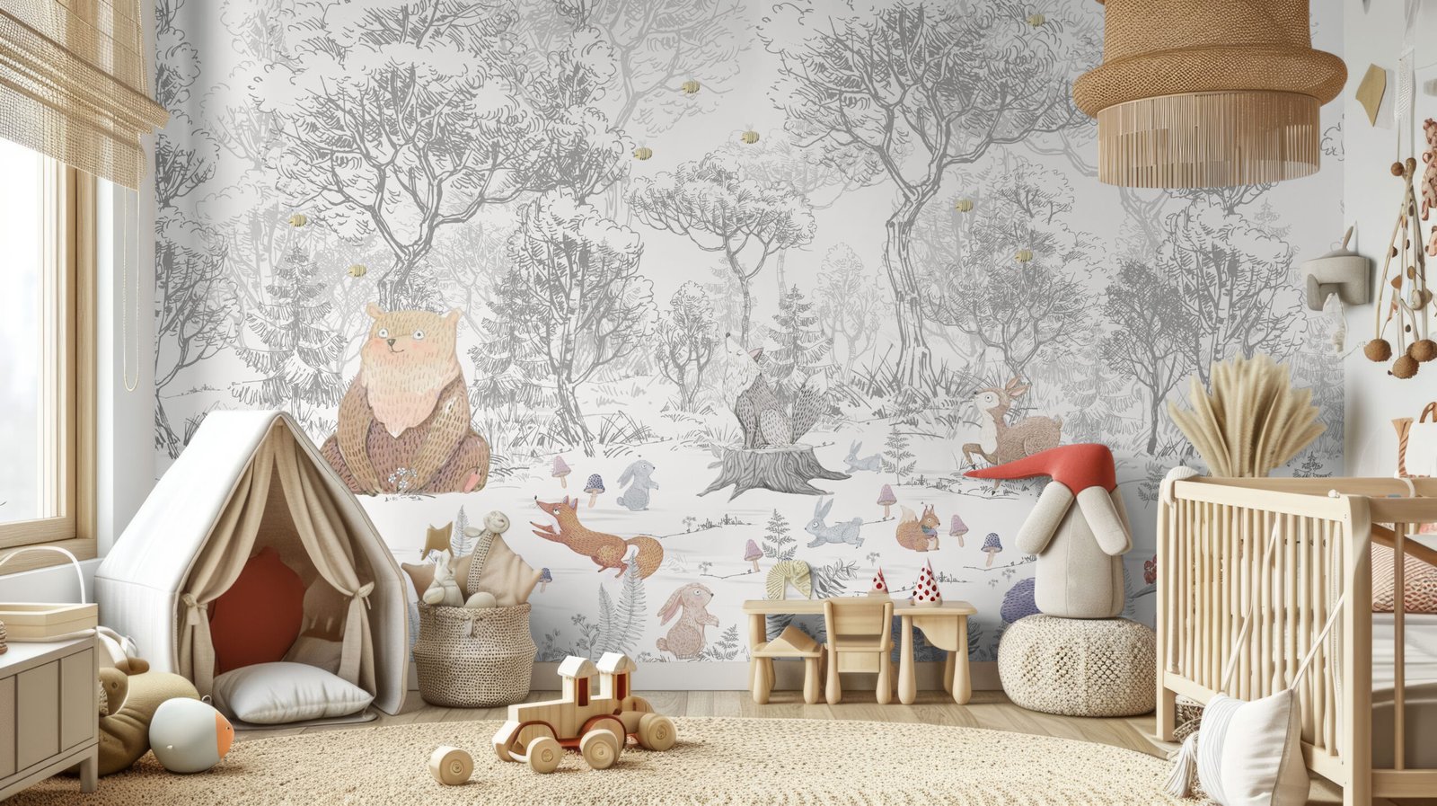 Forest Friends is our signature kids’ wallpaper, designed to spark imagination and bring warmth to any nursery or playroom. Made from highly durable, easy-to-clean materials, it’s the perfect choice for busy little hands and growing minds. Create a cozy, storybook setting where your child can dream, play, and grow—surrounded by their favorite forest friends.