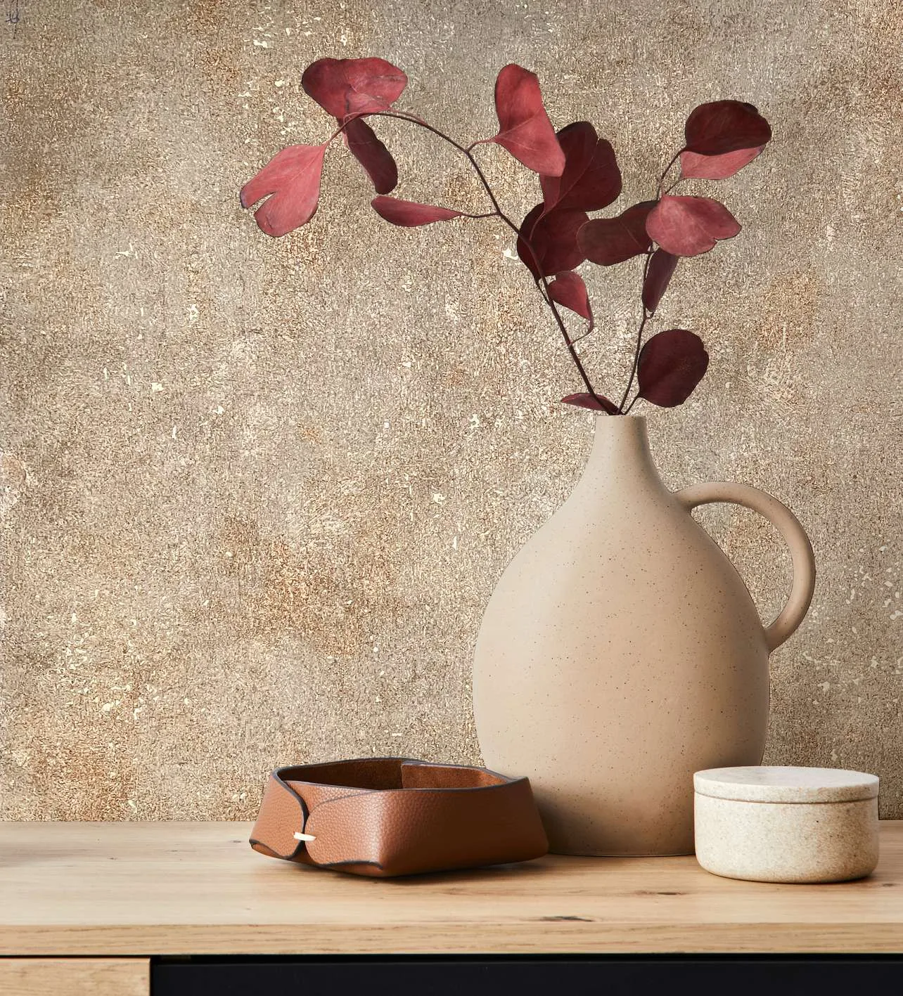 Rooted in the tones of sun-baked earth and kissed with subtle gold, Golden Clay brings nature’s richness into elegant interiors. Its warm, textured surface evokes the feel of handcrafted ceramics, blending rustic charm with a luxurious shimmer. Made from high-durability materials, this wallpaper is designed for both commercial and residential spaces, offering strength without compromising on beauty. Golden Clay adds an inviting warmth and character to any room, wrapping the space in a cozy, sophisticated ambiance that feels both grounded and refined — a true celebration of natural elegance.
