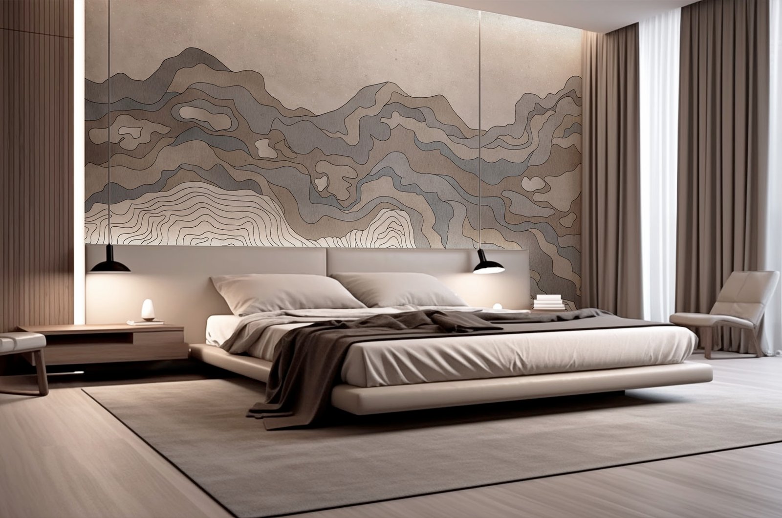 Inspired by the silent poetry of landscapes seen from above, “Gradient Calm” is a hand-painted wallpaper that brings the serenity of natural contours into modern interiors. Soft lines ripple across the wall like gentle topographic waves, blending earthy neutrals with refined minimalism. It’s a visual journey — both grounding and expansive — that invites stillness and reflection.