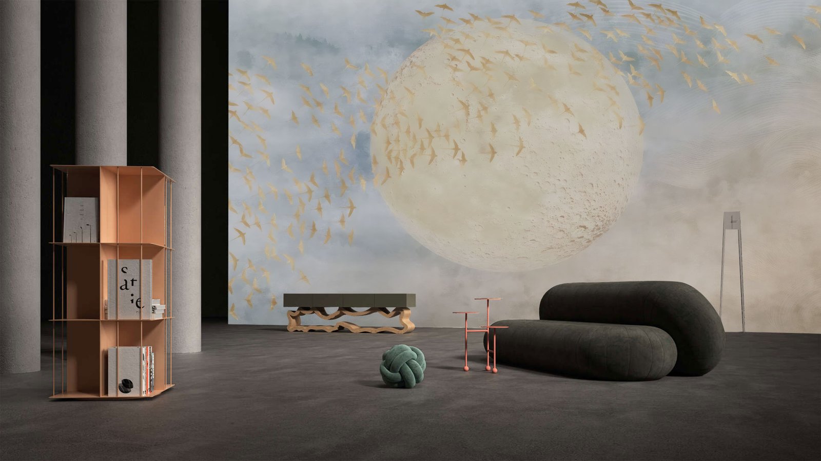 Heavenly Flock captures a moment suspended between earth and sky — where golden birds rise in graceful unison, circling a radiant moon as if drawn to its quiet power. This ethereal design blends celestial wonder with natural rhythm, offering a dreamlike elegance that transforms walls into a canvas of serenity and light.