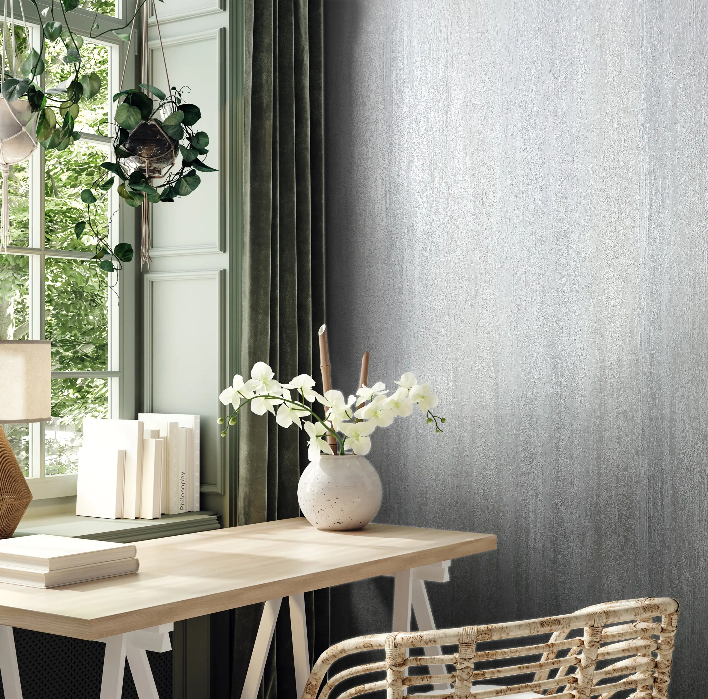 Inspired by the delicate sheen of frozen landscapes and the smooth touch of fine fabric, Iced Silk wraps interiors in a soft, luminous elegance. Its textured surface catches the light like frost on morning linen, creating a gentle shimmer that adds quiet sophistication to any space.