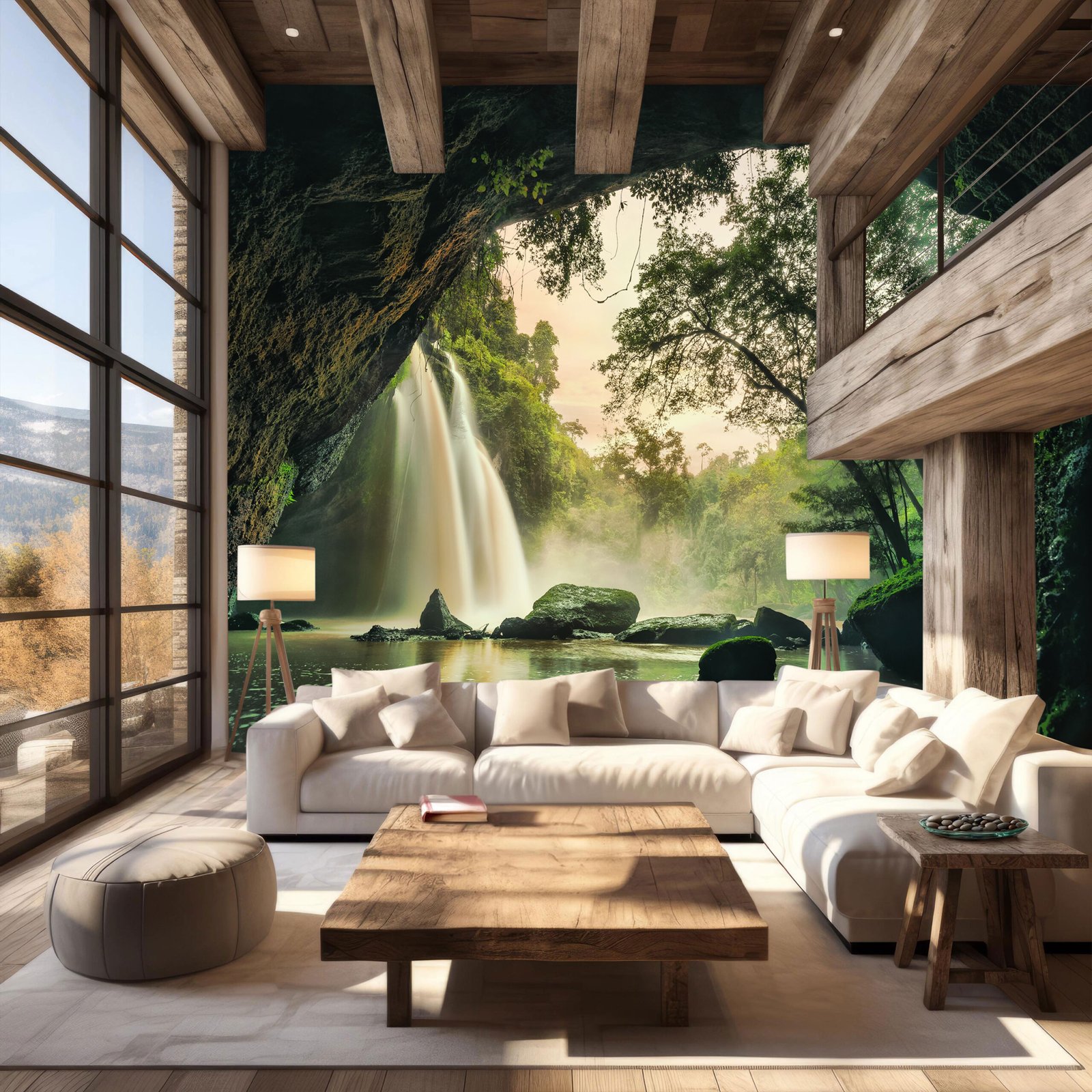 Step into a world where nature meets art with our “Serene Escape” hand-painted wallpaper. Inspired by the tranquil beauty of hidden waterfalls and lush forest canopies, this breathtaking mural transforms any space into a peaceful sanctuary. Each brushstroke is brought to life using high-durability materials, ensuring it stands the test of time in both residential retreats and high-traffic commercial spaces. Whether it’s a cozy living room or a luxury hotel lobby, Serene Escape brings the calm of the wild indoors—where serenity and sophistication flow endlessly.
