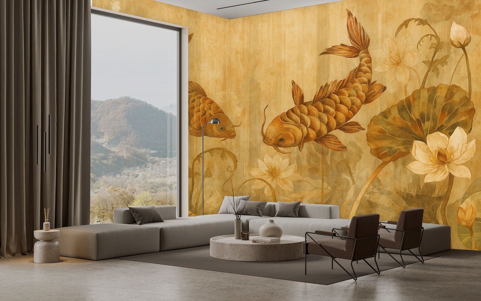 Crafted using high-durability materials, Koi Serenity is built to endure in both residential escapes and commercial sanctuaries. Whether enhancing a spa, a serene hotel suite, or a peaceful living room, this wallpaper offers an immersive sense of balance and beauty — a living artwork where nature’s calm flows through every wall.