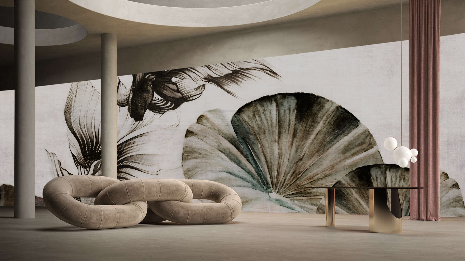 Lotus Reverie tells the story of serenity blooming through artistic expression. Inspired by the gentle elegance of lotus petals and the fluidity of dreamlike forms, this wallpaper transforms any space into a poetic retreat. The design evokes a sense of quiet luxury—where organic shapes and soft tonal contrasts invite calm and contemplation.