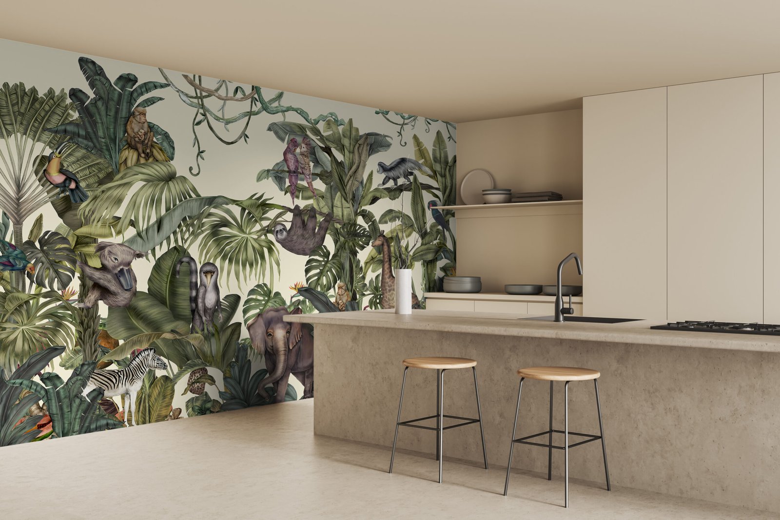 Step into a whimsical world where nature marches to its own rhythm. Lush Parade is more than a wallpaper — it’s a celebration of life in the jungle. With every glance, you’ll discover charming creatures nestled among lush botanicals, from curious sloths and elegant giraffes to exotic birds mid-song. Crafted from premium, high-durability materials, this design is built to last — making it ideal for both vibrant commercial spaces and cozy residential interiors. Whether featured in a child’s playroom, a boutique café, or a creative workspace, Lush Parade transforms walls into storytelling canvases with character, luxury, and lasting beauty.