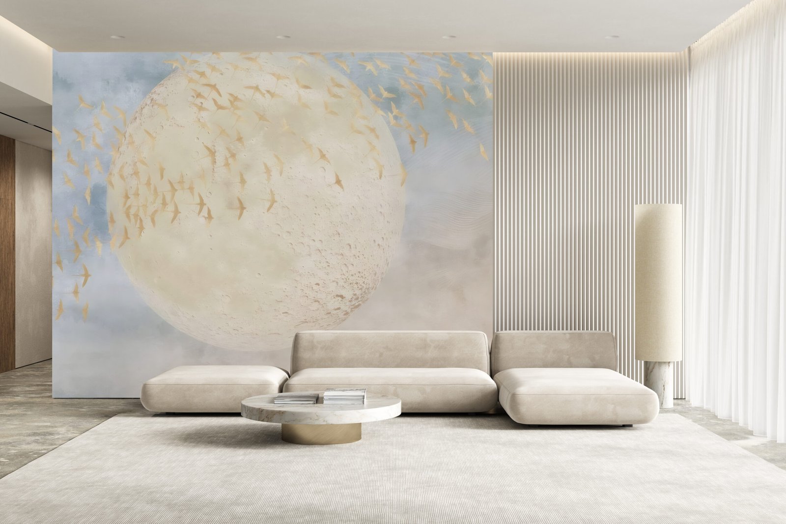 Crafted with premium-quality, high-durability materials, Moon Ballet is designed to endure the demands of both residential and commercial interiors. Its refined textures and fade-resistant finish ensure it remains a timeless focal point. Let your space tell a story—one of calm elegance and heavenly escape.