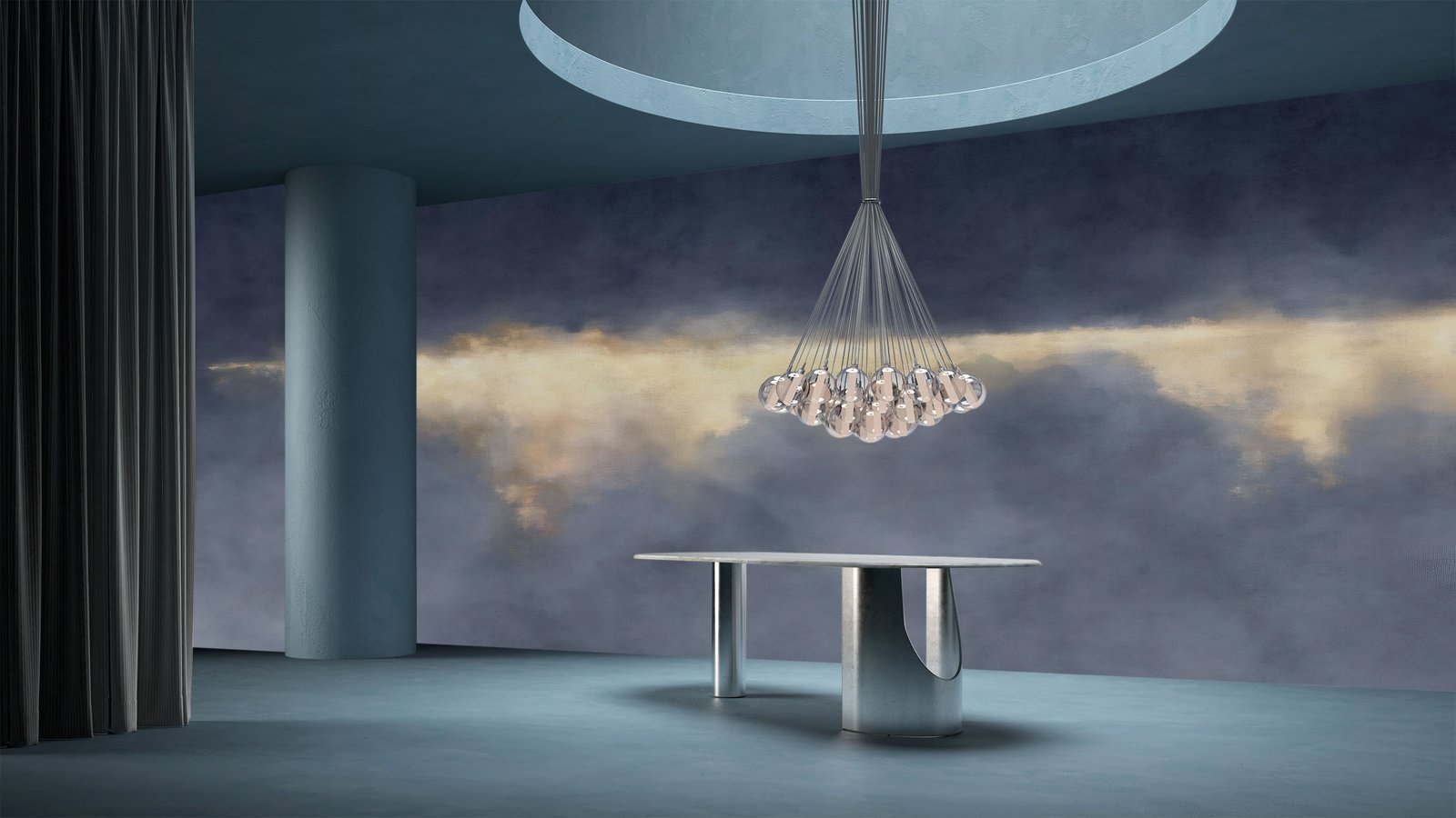 Nocturne Sky invites you into a moment suspended between dusk and nightfall — a celestial horizon painted in deep indigos and soft golden light. This wallpaper captures the quiet majesty of twilight, where day melts into mystery. Crafted with high-durability materials and printed in premium quality, Nocturne Sky is designed to endure beautifully in both residential sanctuaries and upscale commercial interiors. Whether gracing a sophisticated lounge or a serene bedroom, this piece transforms walls into a visual escape — a story of stillness, depth, and modern elegance.