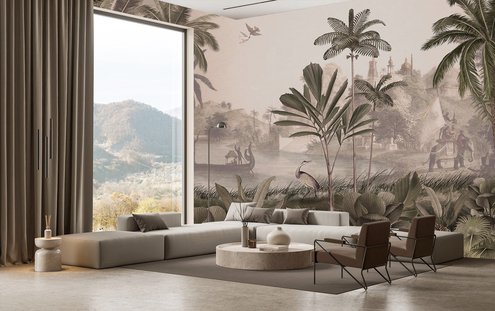 In a quiet sunlit room, where natural wood meets soft light, Regal Oasis brings the elegance of a painted paradise to life. Delicate branches stretch upward, bearing ripe fruit and blossoms, while birds glide between leaves in graceful harmony. This wallpaper transforms any wall into a refined botanical escape — a sanctuary of serenity and sophistication. Crafted with premium-quality materials and designed for exceptional durability, Regal Oasis is ideal for both luxurious residential interiors and distinctive commercial spaces. Let every glance at your wall feel like a breath of calm, wrapped in timeless charm.