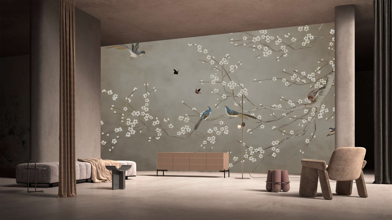 Inspired by timeless mural artistry and the poetry of nature, this wallpaper transforms interiors into a refined sanctuary. Soft floral details and flowing branches create a balanced composition that feels both calming and luxurious, inviting the space to breathe.