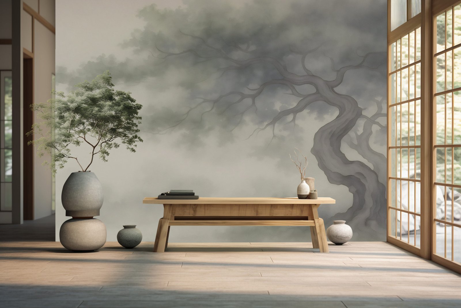 As dusk settles, the silhouette of a twisted bonsai emerges through a veil of gentle mist — this is Twilight Bonsai. Inspired by the quiet strength and grace of ancient trees, this wallpaper evokes a sense of calm, balance, and timeless beauty.