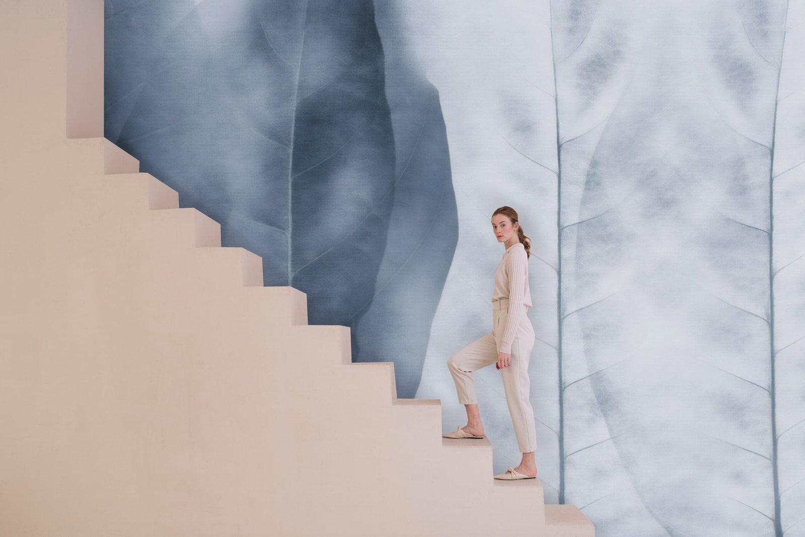Whispers of nature unfold across your walls with Vein Whisper, a wallpaper design where oversized botanical silhouettes emerge like quiet poetry. Inspired by the intricate patterns of leaf veins and shaded in soft, cool gradients, this piece transforms any interior into a tranquil retreat.