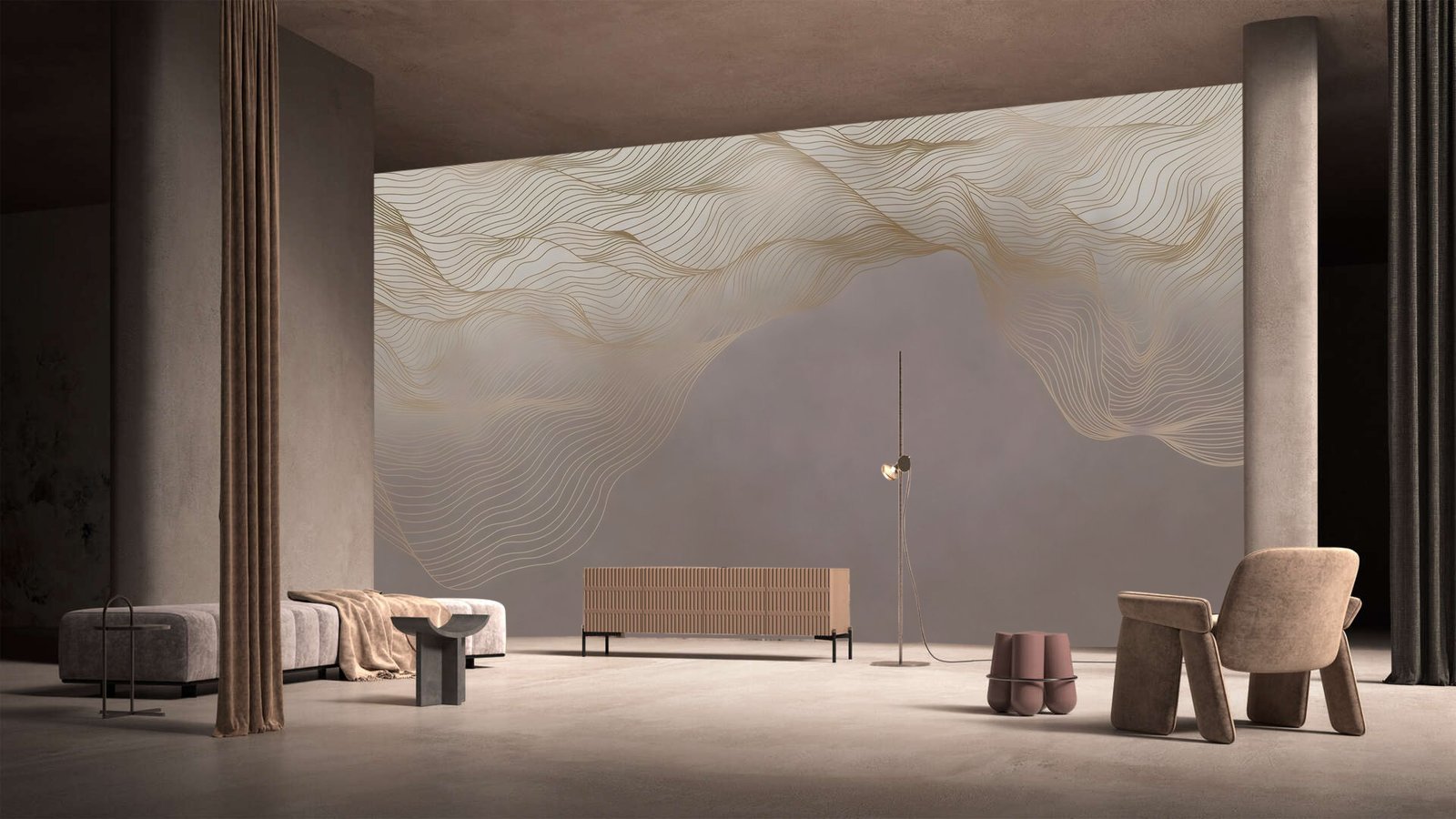 Inspired by natural contours and modern minimalism, this wallpaper transforms walls into a subtle work of art. Delicate linear patterns glide across a textured backdrop, creating depth, rhythm, and a sense of calm sophistication.
