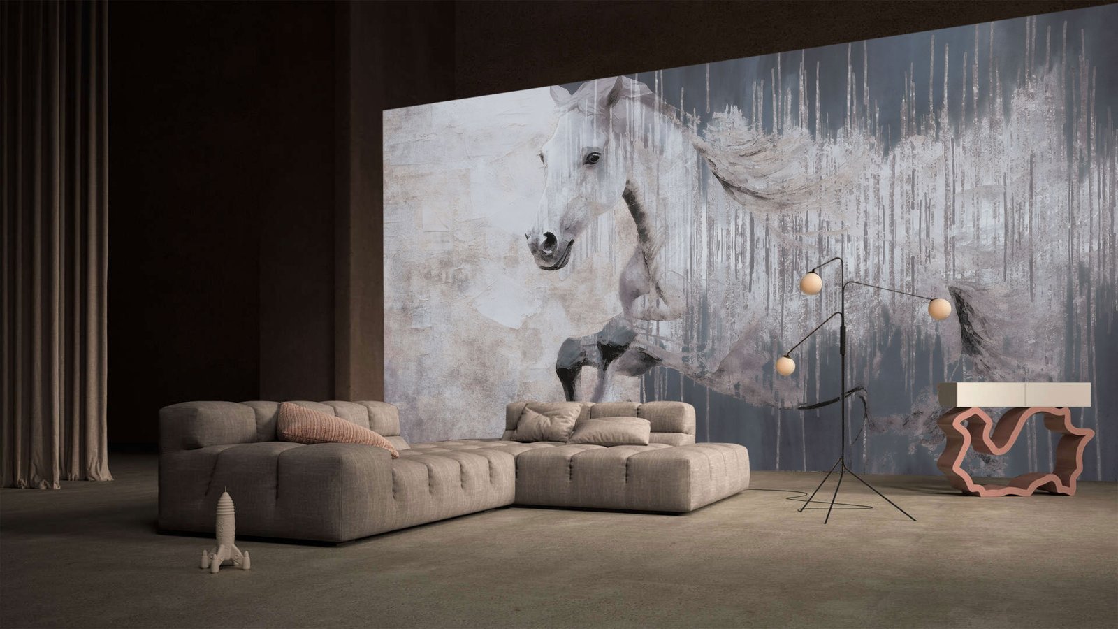 In a space where stillness meets motion, Whispering Hooves brings the quiet power of a galloping steed into the heart of your interior. This evocative wallpaper captures the spirit of elegance and freedom, where every brushstroke tells the story of movement frozen in time. The soft gradients and ethereal textures create a dreamlike atmosphere, ideal for transforming both residential sanctuaries and sophisticated commercial spaces.
